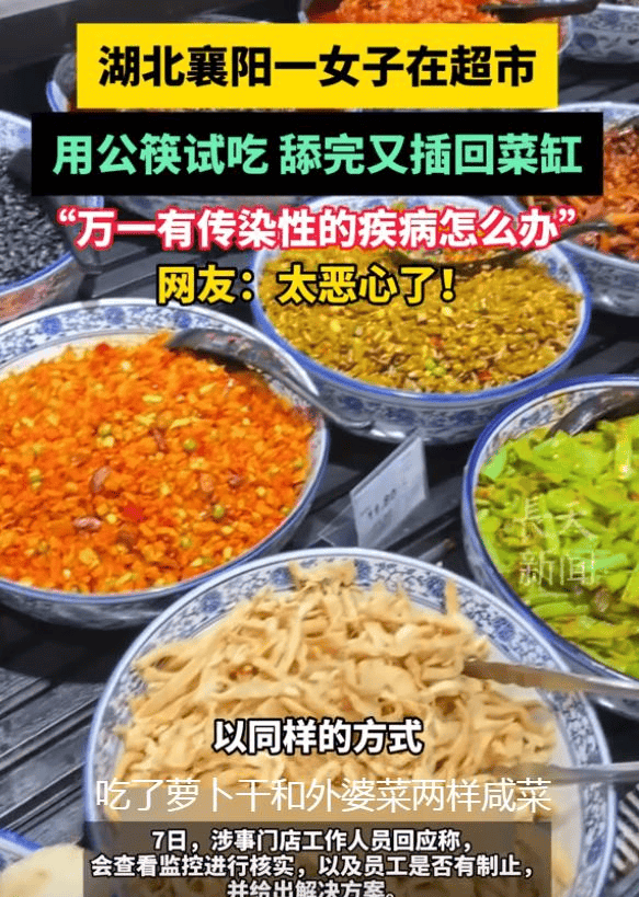 但女子仍然利用了公筷,完美轨制,每小我都该记住:你手中的公筷,也激发了人们对超市试吃办理轨制的质疑。并当即将该咸菜下架送去查抄。对不妥行为者购物权限。当我们选择对不文明行为说不?
